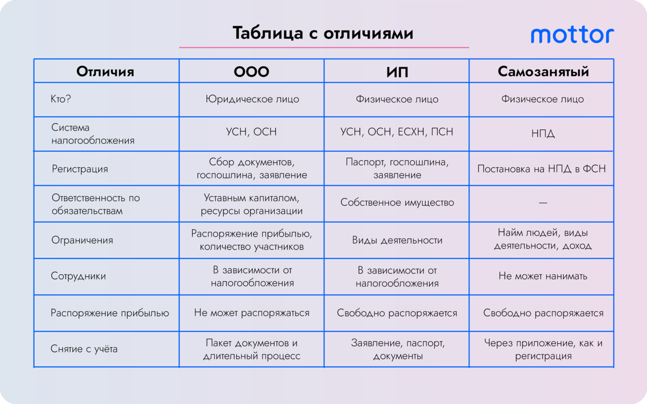 - ООО характеризуется ограничением ответственности участников, в то время как у ИП владелец несет личную ответственность по всем обязательствам бизнеса. Это необходимо учитывать при выборе формата.