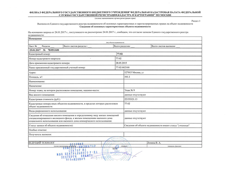 - Выписка из ЕГРН (единого государственного реестра недвижимости). Этот документ содержит информацию о кадастровой стоимости квартиры, ее площади, адресе и другие данные, необходимые для оформления права собственности.