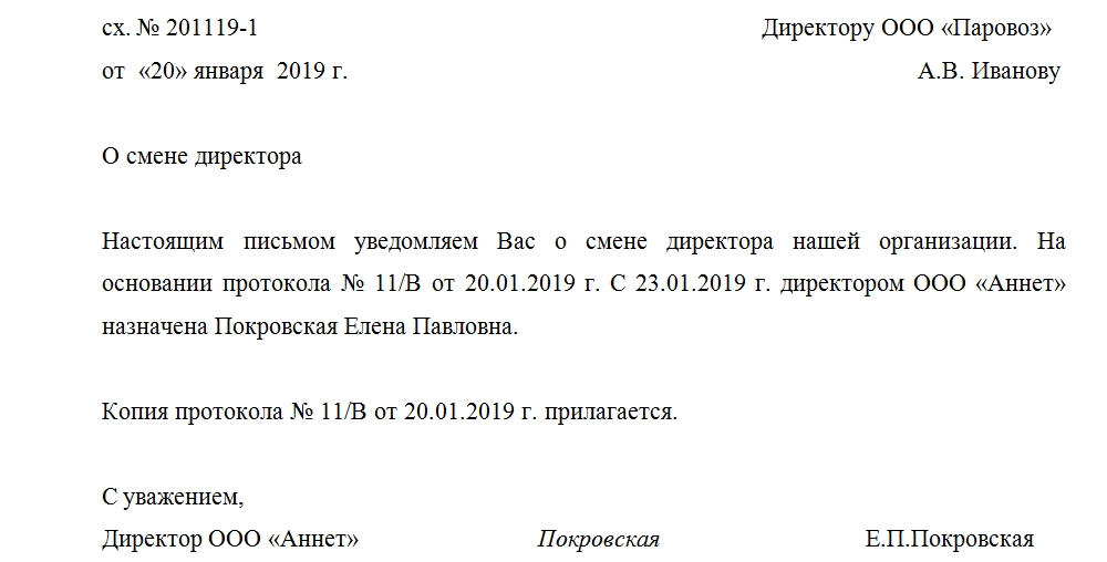 Уведомление о смене руководителя