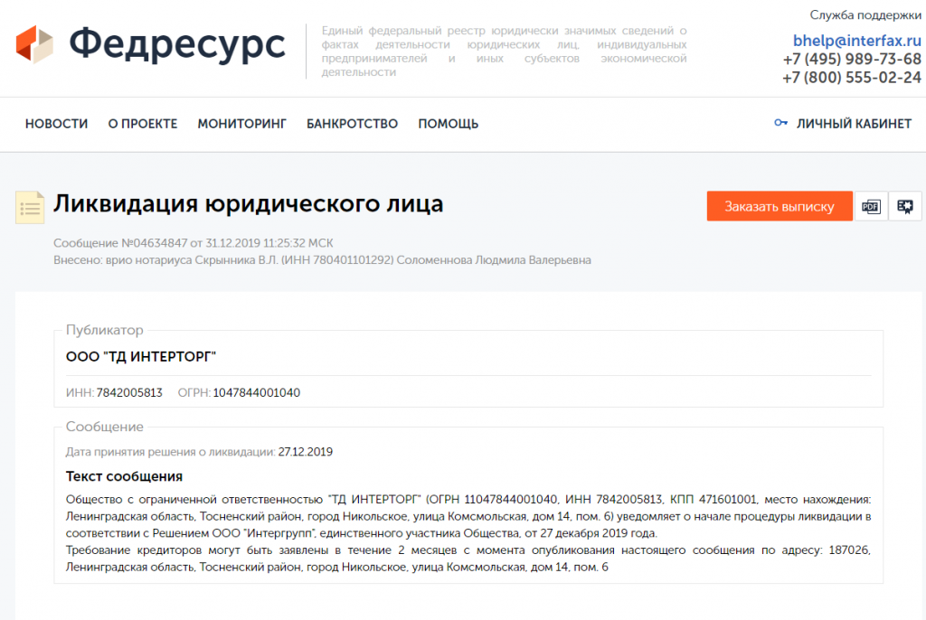 - Закрытие юридического лица по решению налоговой инспекции.