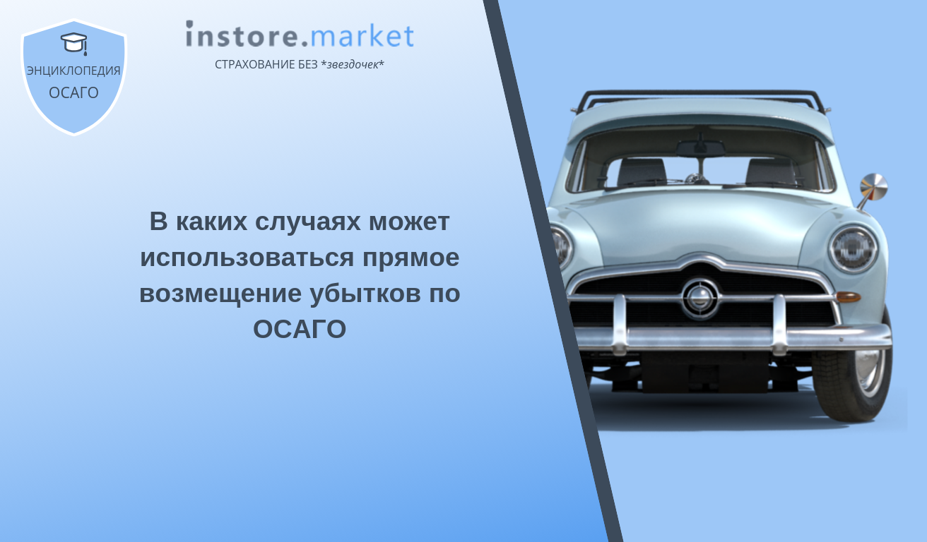 Прямое возмещение (урегулирование) убытков по Обязательному страхованию гражданской ответственности владельцев транспортных средств (ОСАГО) — это механизм, который позволяет страхователю получить компенсацию за причиненный ущерб непосредственно от страховой компании, без участия других лиц.